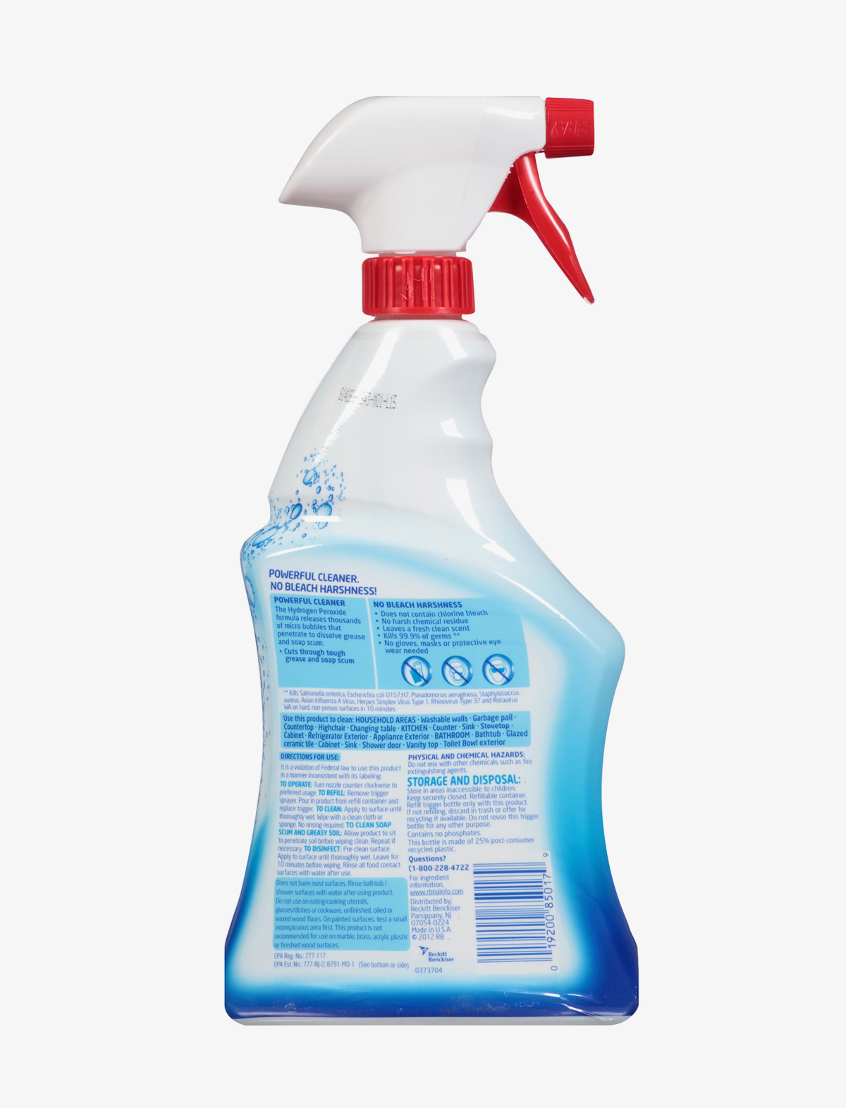Lysol Power & Free is a new cleaning formula that uses Hydrogen Peroxide to release thousands of micro bubbles to penetrate to dissolve tough stains for a powerful clean without the harshness of bleach. Lysol Power and Free is a range of family friendly cleaners for a truly healthy home. The multi-purpose cleaner can be used throughout the home to clean household areas and kill 99.9% of viruses & bacteria.Powerful Cleaner the hydrogen peroxide formula releases thousands of micro bubbles that penetrate to dissolve grease and soap scum.Cuts through tough grease and soap scum.